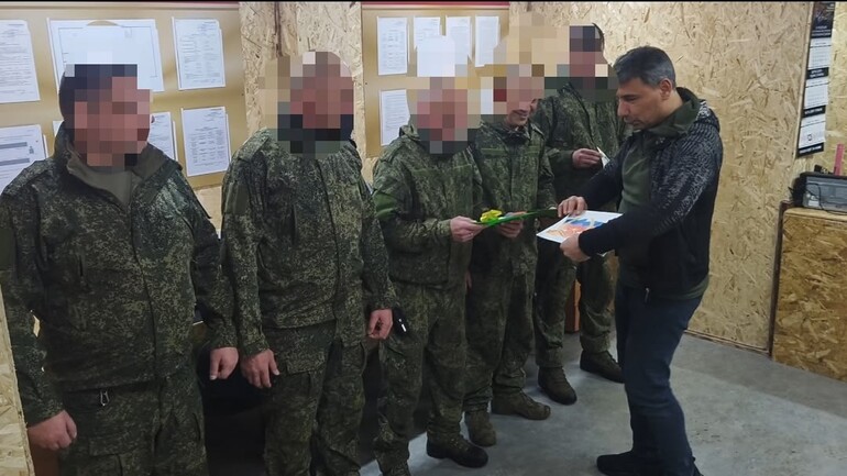 Председатель Общественной палаты Ленинградской области Александр Габитов лично вручил поздравления и открытки от юных ленинградцев с наступающим Днем защитника Отечества бойцам на передовой.